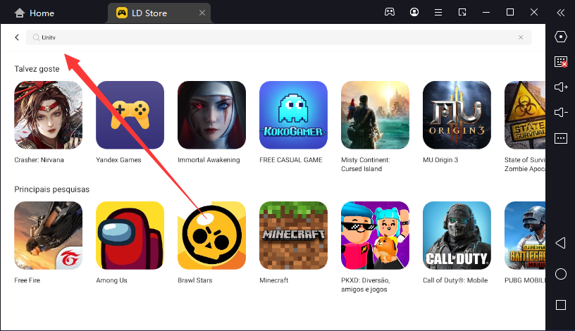 Abra LD Store e na barra superior direita, clique em “Pesquisar aplicativos e jogos”.